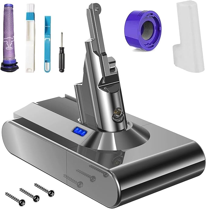 Upgrade your Dyson V8 vacuum with the FLYLINKTECH 6000mAh Replacement Battery, delivering at least 35 minutes of runtime in normal mode. With a 21.6V Lithium-ion design and 129.6Wh power output, it lasts 48% longer than original batteries and offers 30% more power. Made with high-quality 20700 cells.